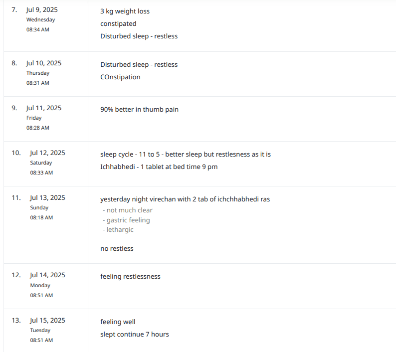 The patient underwent an integrated therapeutic protocol combining naturopathy, ayurveda and physiotherapy-based interventions. The following treatments were administered as part of the clinical plan: