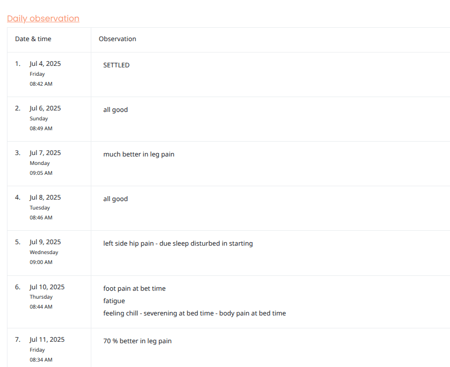 Pain Score: Reduced from 100 (severe pain) to 30 (moderate pain).