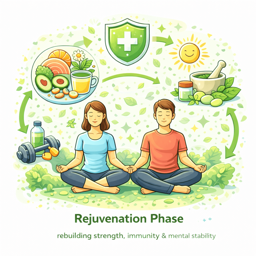 Anti-inflammatory, liver-friendly diet Herbal teas and natural supplements Sleep routine stabilization Healthy daily habits to reduce dependency triggers