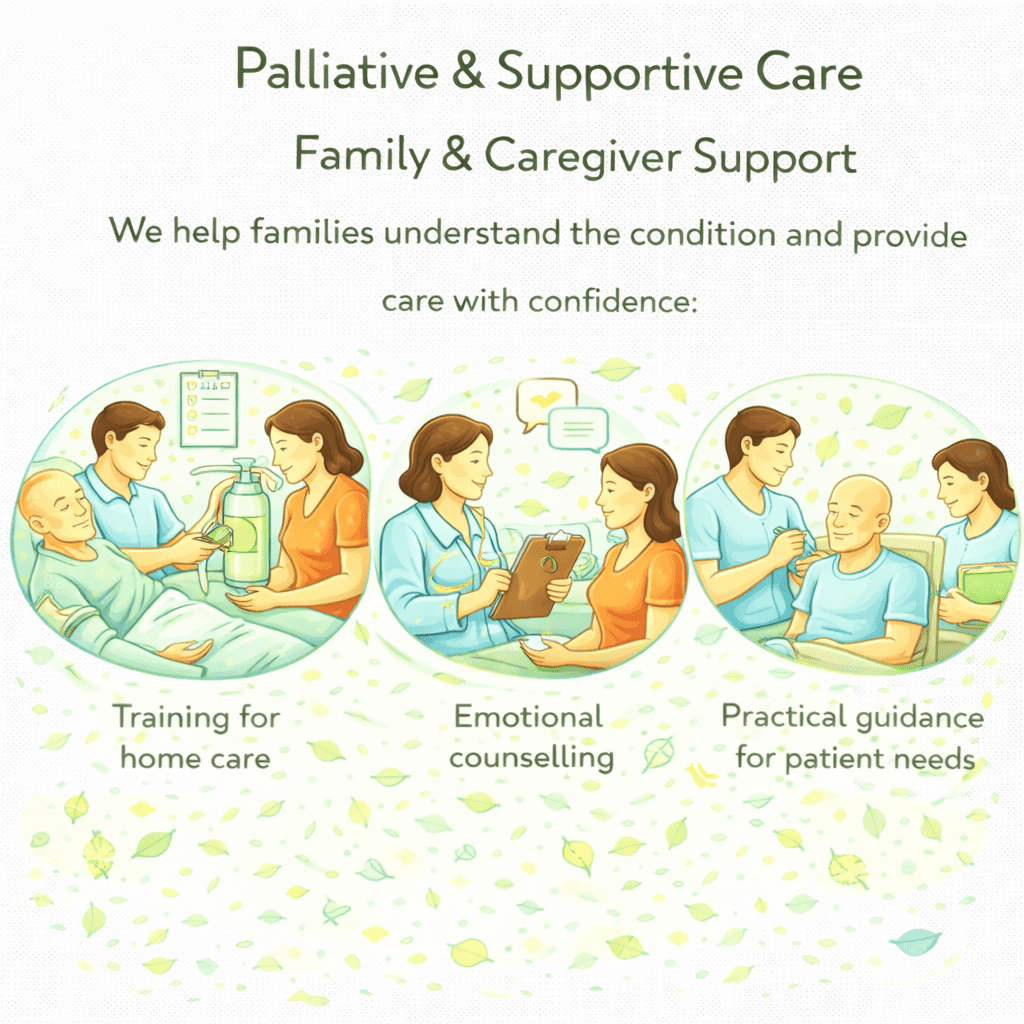 We focus on holistic symptom relief, emotional well-being, and family support, ensuring comfort at every stage of illness.