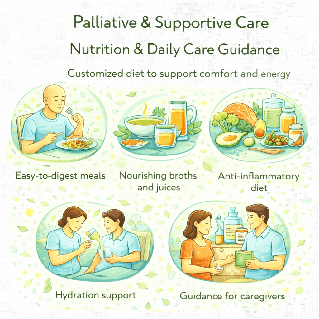 Easy-to-digest meals Nourishing broths and juices Anti-inflammatory diet Hydration support Guidance for caregivers -