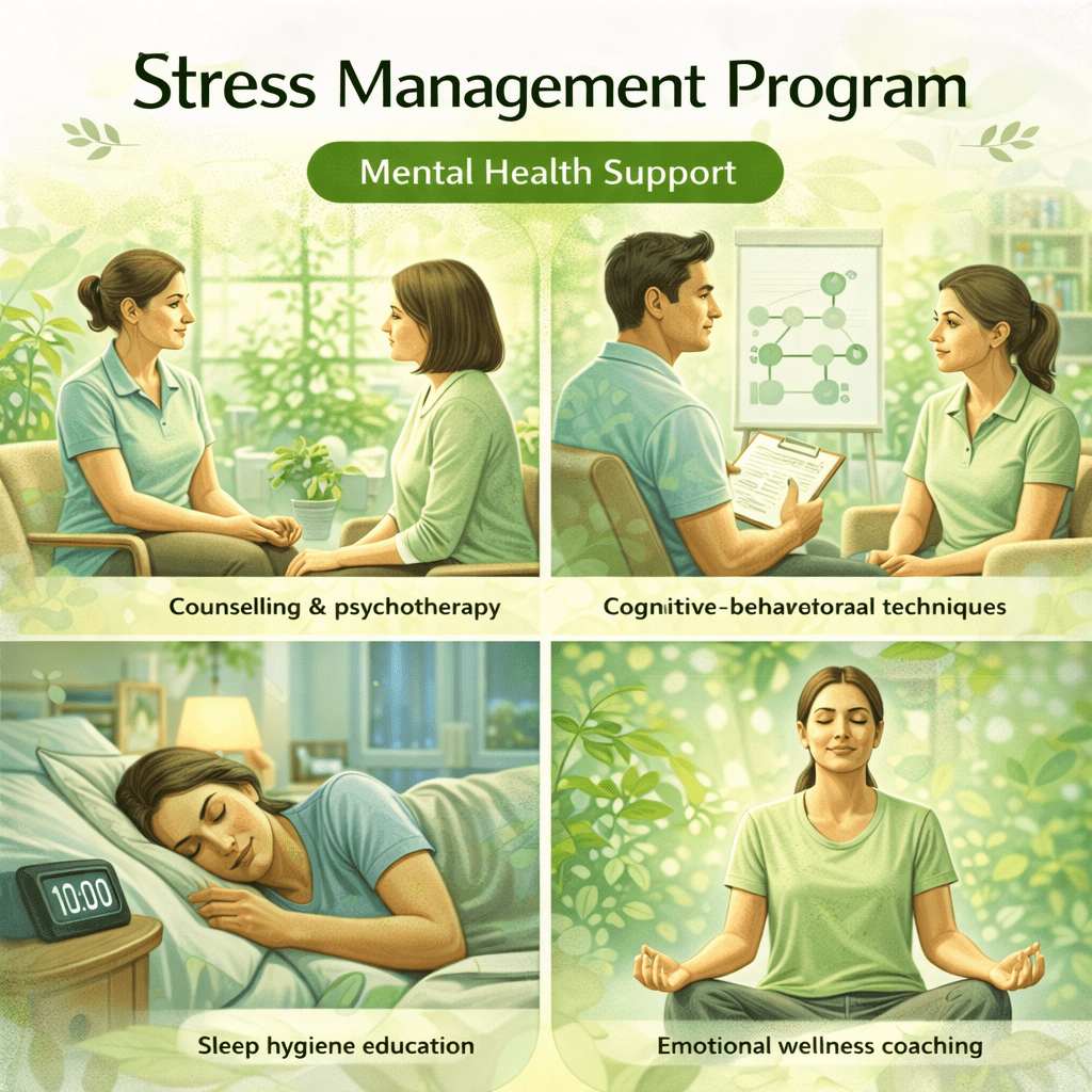 Counselling & psychotherapy Cognitive-behavioural techniques Sleep hygiene education Emotional wellness coaching -