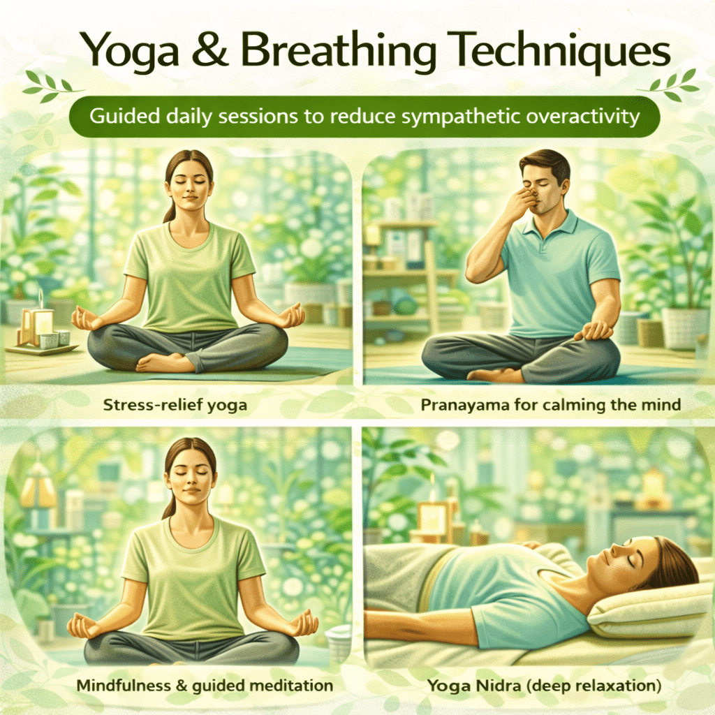 Stress-relief yoga Pranayama for calming the mind Mindfulness & guided meditation Yoga Nidra (deep relaxation) -